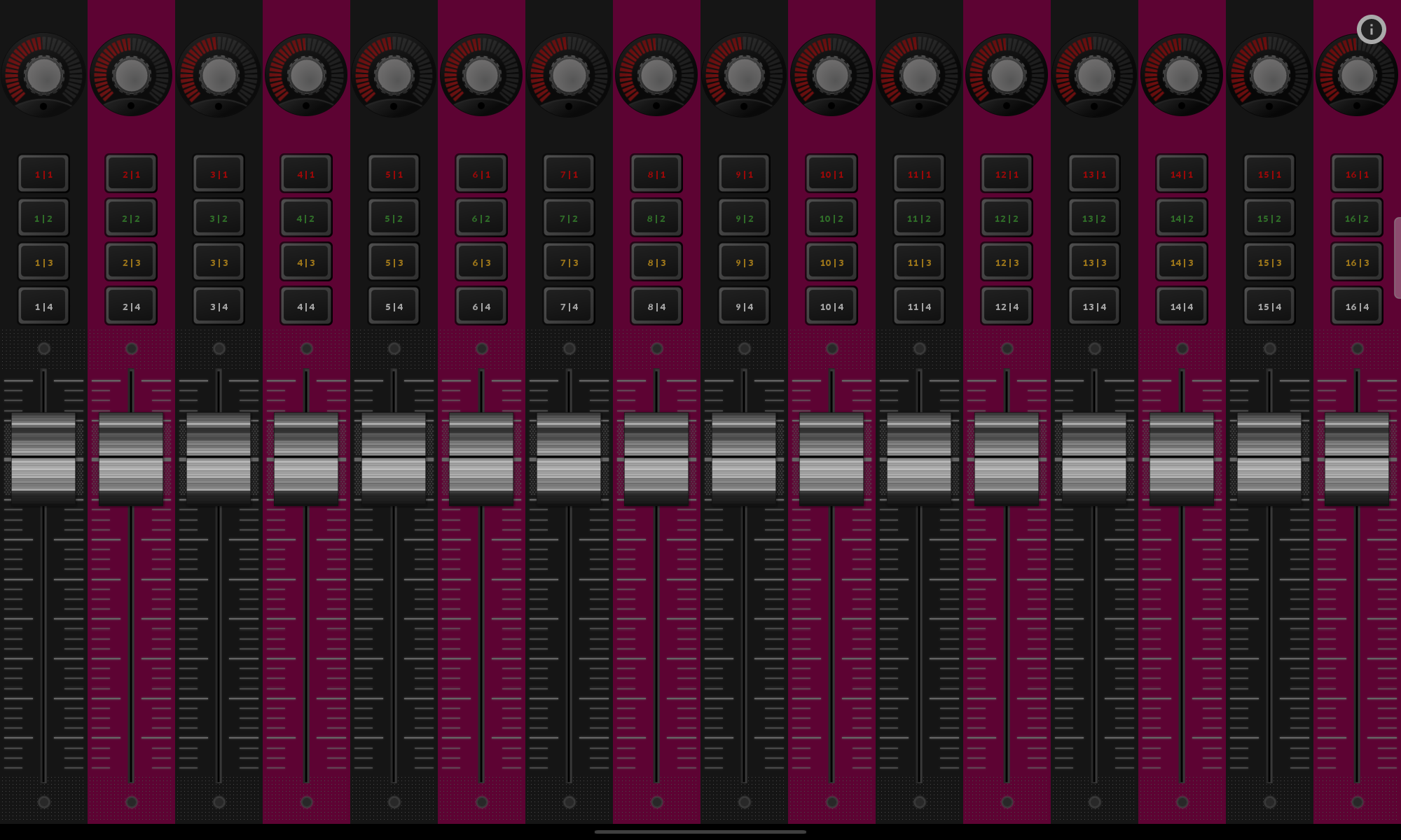 ![]() Controls the 'value under mouse pointer' in Cubase / Nuendo 12+. 'AI' here refers to the 'smart' knob on the discontinued CC121 hardware controller where it stood for 'Advanced Integration', not what everybody will associate with it these days ![]() A collection of 'alternative' keyboards, making older stuff from the hardcoded parts of the app available for custom controllers. ![]() Basic Control-Room remote for Cubase / Nuendo 12+ with four subpages for main out, phones and two cue channels. ![]() Emulation of the discontinued MCU plugin-controller. Cakewalk, Logic and Reason have built-in support for this, but it may be less useful with other DAWs. ![]() ![]() Emulates basic functionality of a Hercules RMX2 controller. Most DJ-programs should have a preset for that device. Centered controls (EQ knobs, pitch- and crossfader) recenter on double-tap ![]() Vertical scrollgroup demo. ![]() MIDI Machine Control (MMC) transport controller with feedback. ![]() Basically just a generic grid template. Also used to demonstrate dynamic labelling and color changes with DAW-side controller scripts (Cubase 12 & Bitwig). ![]() Just another generic mixer style layout template (Someone was listening to old Blondie albums while working on copy and paste stuff as it seems). ![]() Shows some more complex control and group types new in 2.4.0. Hopefully also a fun little synthesizer interface. ![]() Remote controller for the Totalmix software coming with RME audio interfaces. ![]() |